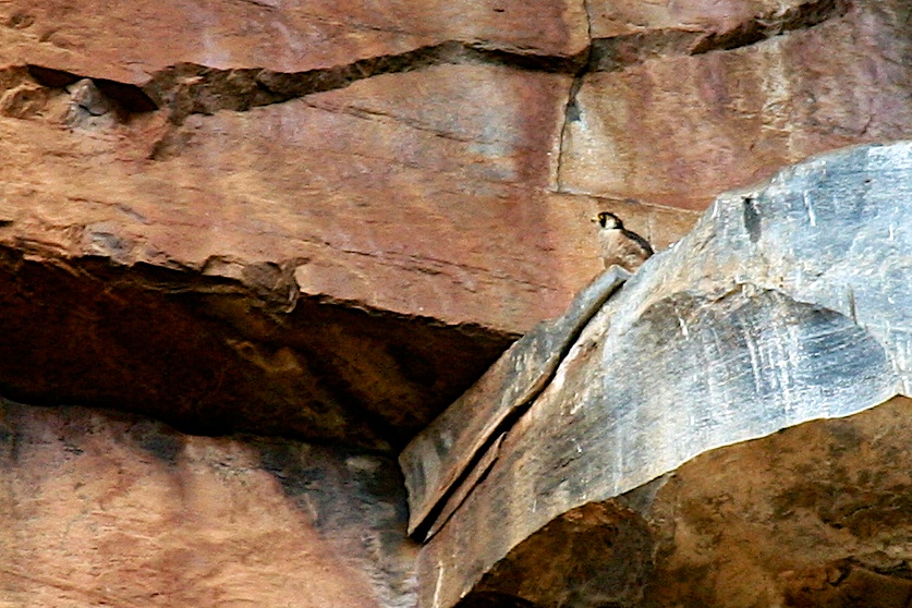 Beskrivelse: Taitafalk siddende på klippehylde og fulgte svalerne intenst.