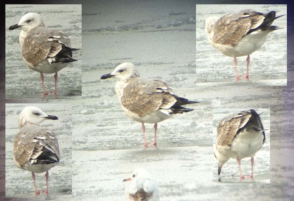 Beskrivelse: Denne måge har for mig at se både karakterer der matcher kaspisk, såvel som sølvmåge, for ikke at udelukke middelhavsmåge. I flugten sås størstedelen af halen som hvid, med et relativt smalt og lige afskåret sort endebånd. Fuglen virkede desuden ret stor og 'tungmavet' i forhold til de omkringværende sølvmåger.
