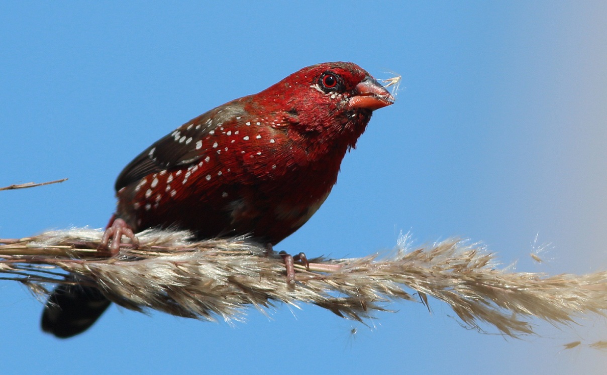 Beskrivelse: The species name of amandava and the common name of avadavat are derived from the city of Ahmedabad in Gujarat, India, from where these birds were exported into the pet trade in former times