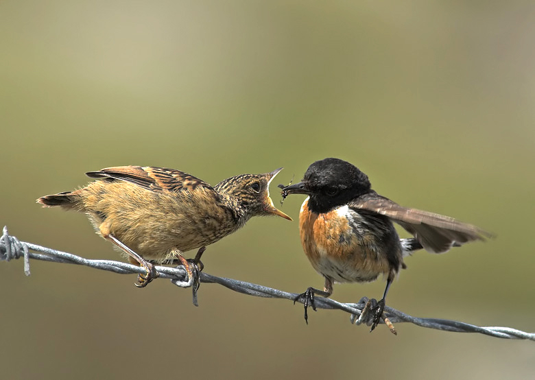 Billedet nærmest sitrer af ungfuglens intense tiggen; den gamle hans hoved er lidt på sned, så den undgår at få et undernæb stukket ind i halsen.....