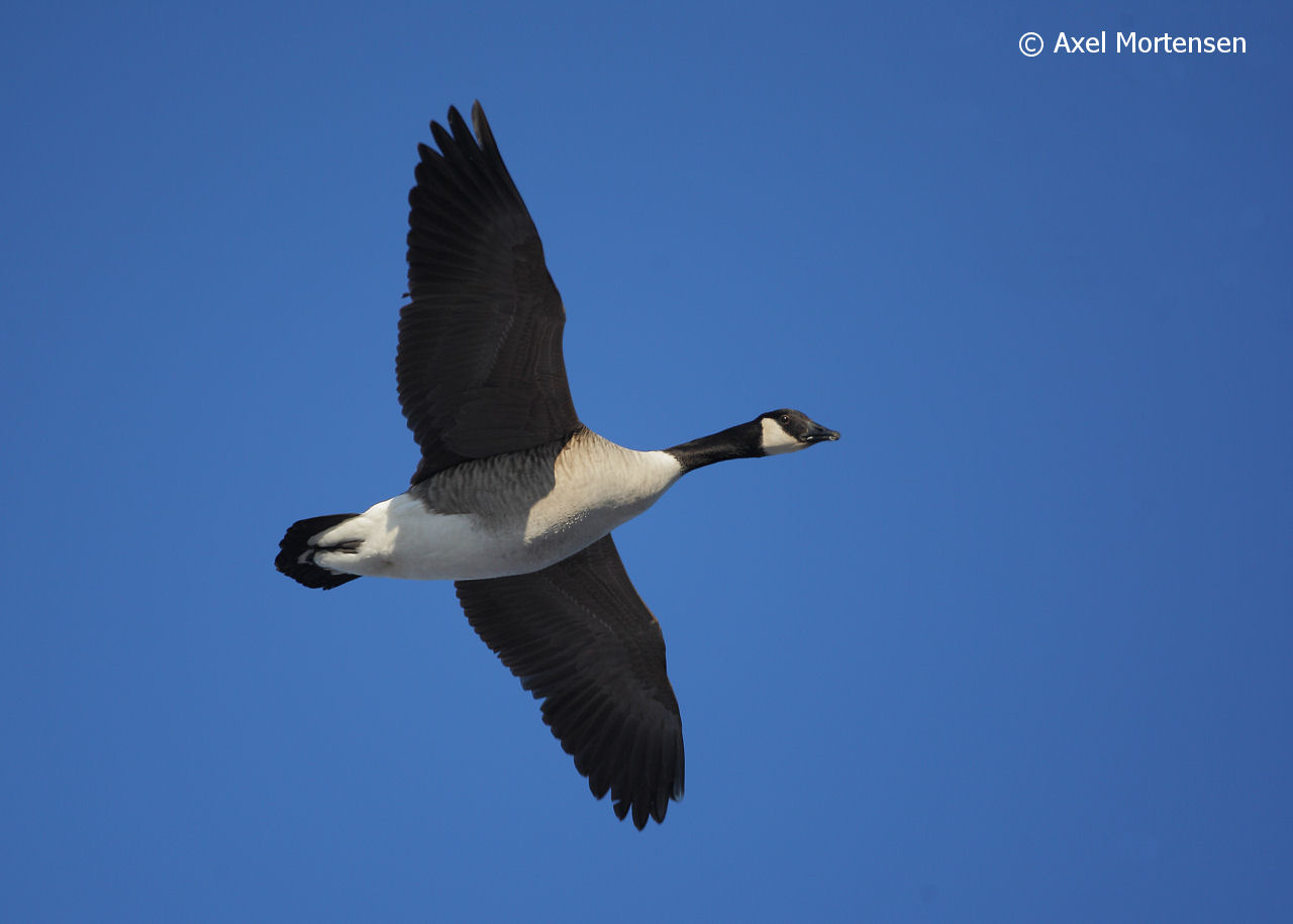 Titel: En af de mange hundrede canadagæs, som trak ind over stranden