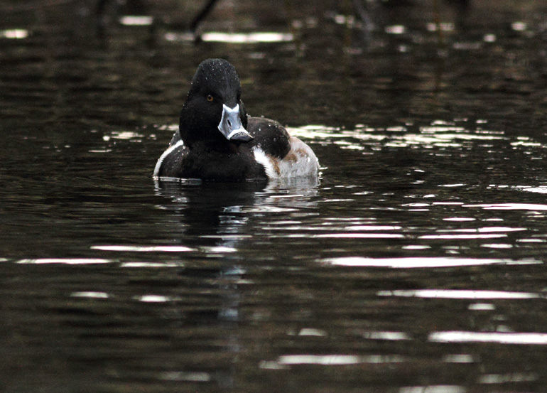 Halsbåndstroldand har generelt en irisfarve der er en tand varmere end på Troldand. På Halsbåndstroldand er det min erfaring at iris er fra varmt gullig til varmt orange, modsat Troldand der har en koldt gullig iris.