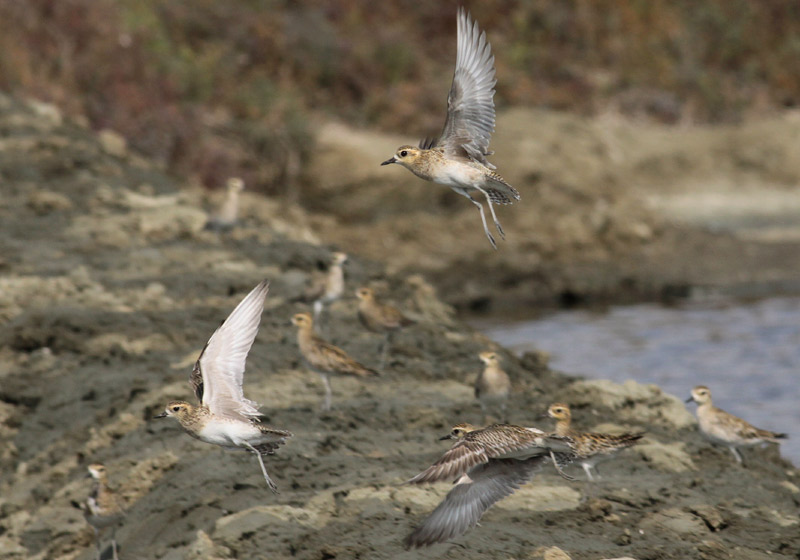 Her er sagen angrebet fra den modsatte side: hos Sibirisk Hjejle. Bemærk, hvordan den underste fugl nærmest ser ud til at have hvid undervinge, den øverste grå. I felten så de ganske ensartet grålige ud, hvilker understøttes f andre fotos. Her er det vigtigt, at armhulefjerene fortsat virker lidt mørkere end undervingedækfjerene - en forskel, man tit ser på fotos, men som vanskeligere erkendes i felten.