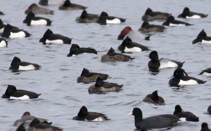 Beskrivelse: Lille bjergand han er på størrelse med Troldand, men har grå (tværbåndet) ryg og anderledes hovedform. Det er efterhånden velkendt, at kun næbneglen er sort. dette gør, at næbbet set fra siden virker helt lyst, i modsætning til Troldand (samt aythya-hybrider) der har hele næbspidsen sort. Desuden er næbneglen så smal, at den kun ses som en sort streg, nær næbbet ses forfra; Bjergandens sorte næbnegl er nærmest blødt trekantet, ala en lakridspastil og tydeligt bredere.