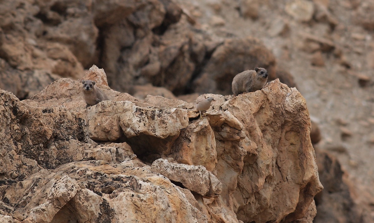Beskrivelse: Ørkenhøne og Rock Hyrax