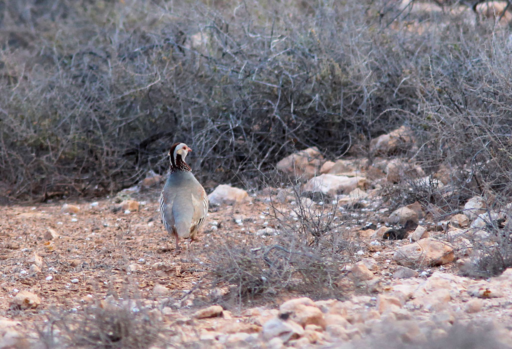 Beskrivelse: De gange jeg er stødt på Berberhøne på Tenerife og nu på Fuerteventura, har fuglene valgt at flygte ved at løbe fremfor at flyve.