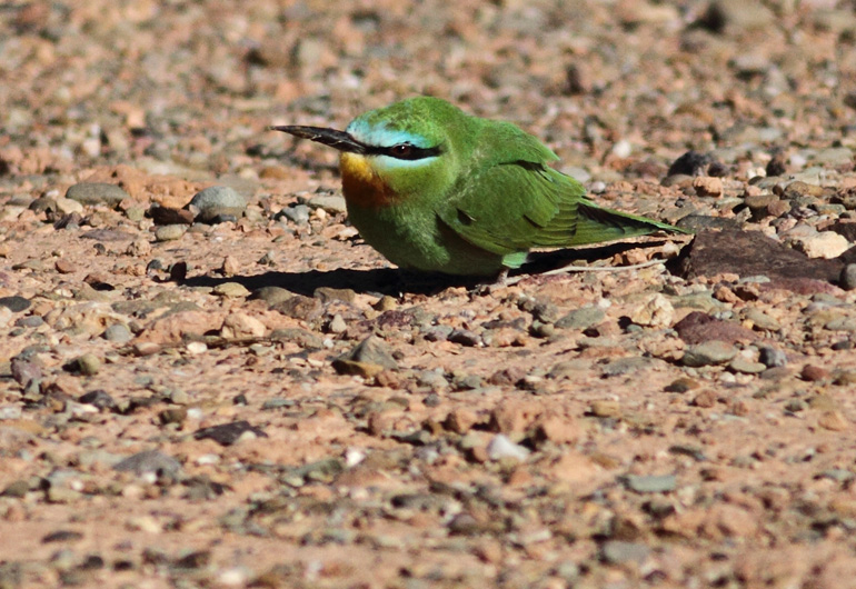Beskrivelse: Flokke af almindelig biæder og grøn biæder fløj lidt rundt, men da det blæste kraftigt foretrak de at sidde på jorden.