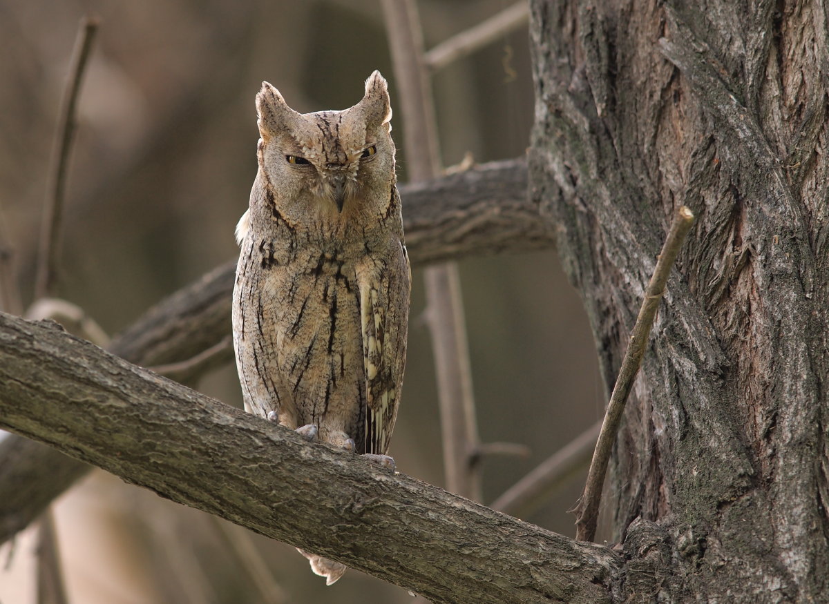 Stribet Dværghornugle (Otus brucei) Pallid Scops Owl -