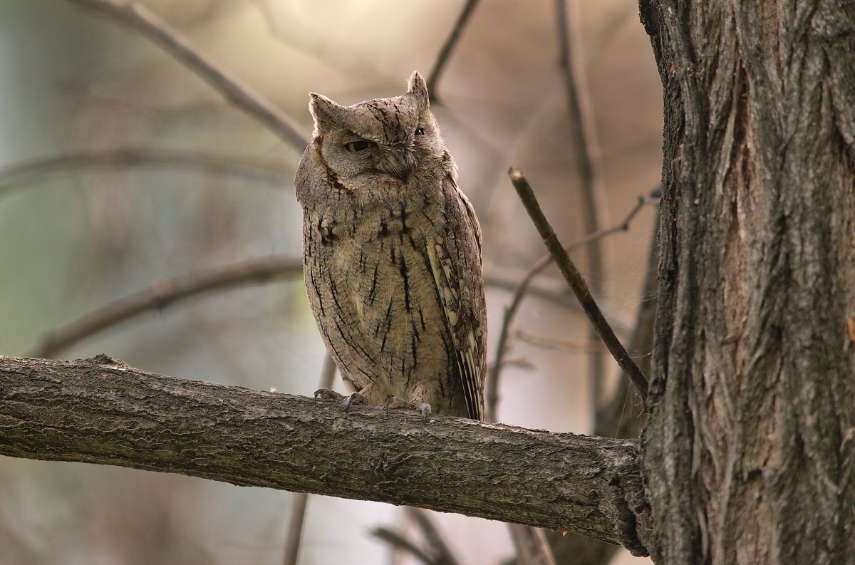 Stribet Dværghornugle (Otus brucei) Pallid Scops Owl -