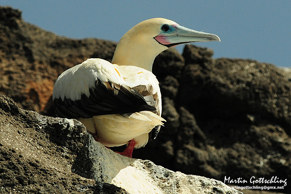 Beskrivelse: Adult white morph. Bird has some waste on it's left leg. It was sitting at the southern side of Raso in the breeding cliffs between the Brown Boobys.