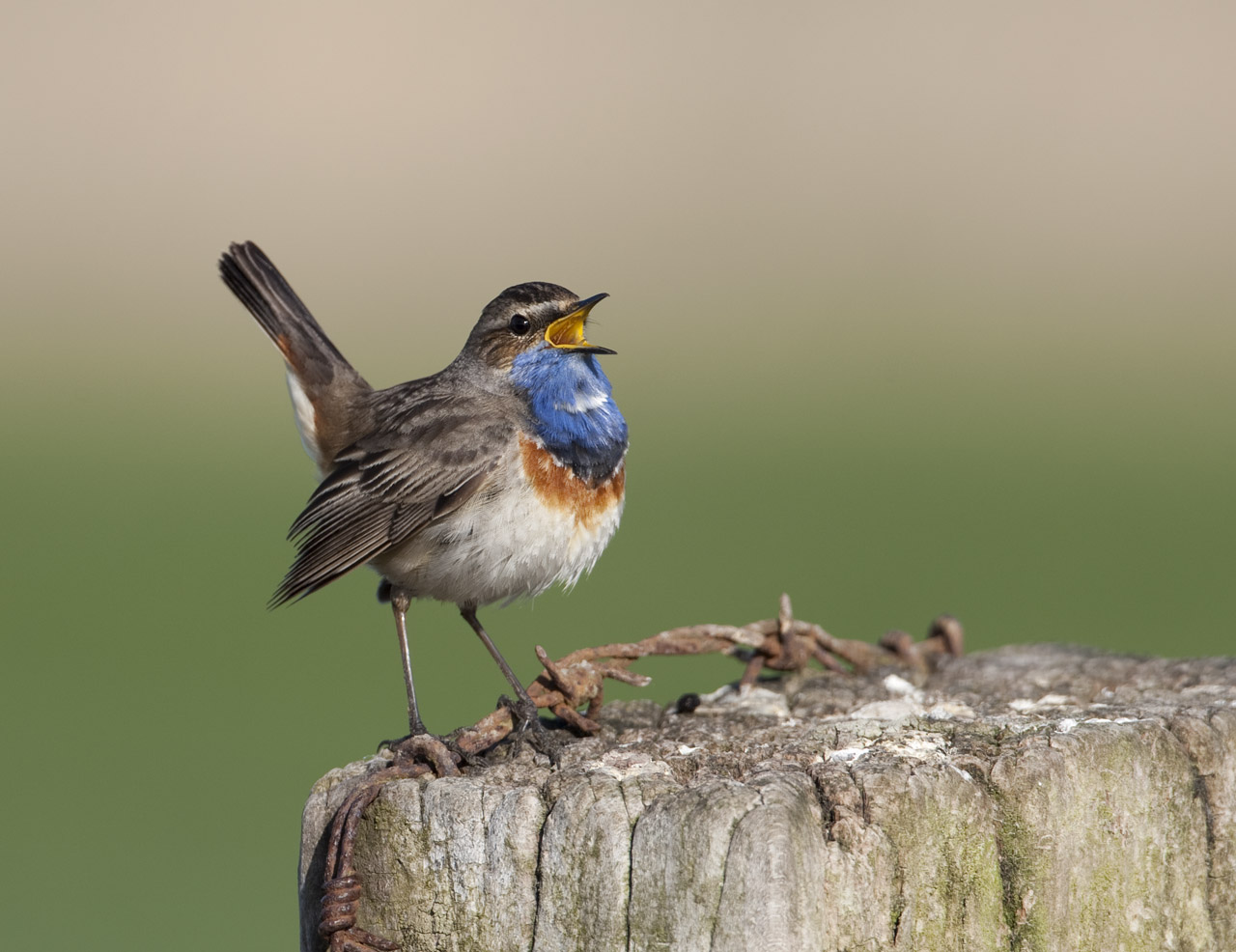 Beskrivelse: Den hvide strubeplet fortæller, at det er den sydlige blåhals.