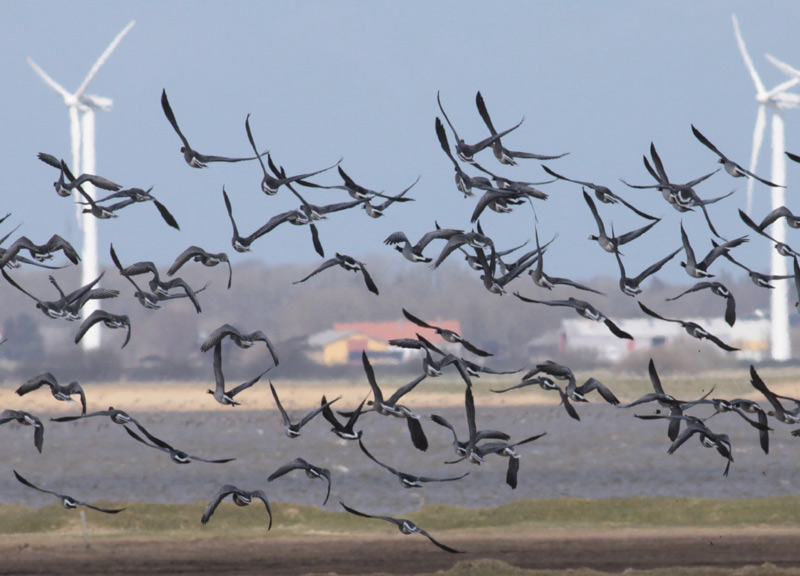 Beskrivelse: Her skal kigges efter en lille gås med sorte vinger og tydelig hvid flankestribe. Ulvedybets Rødhalsede Gås, der dukkede op 28/4 og som var pp 29/4.