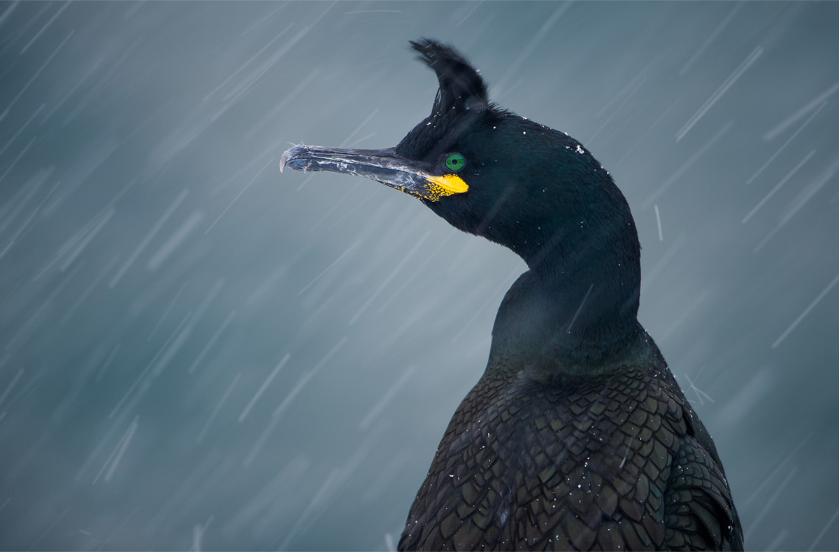 Beskrivelse: Toppskarv i snøstorm fra Hornøya, Finmark.
