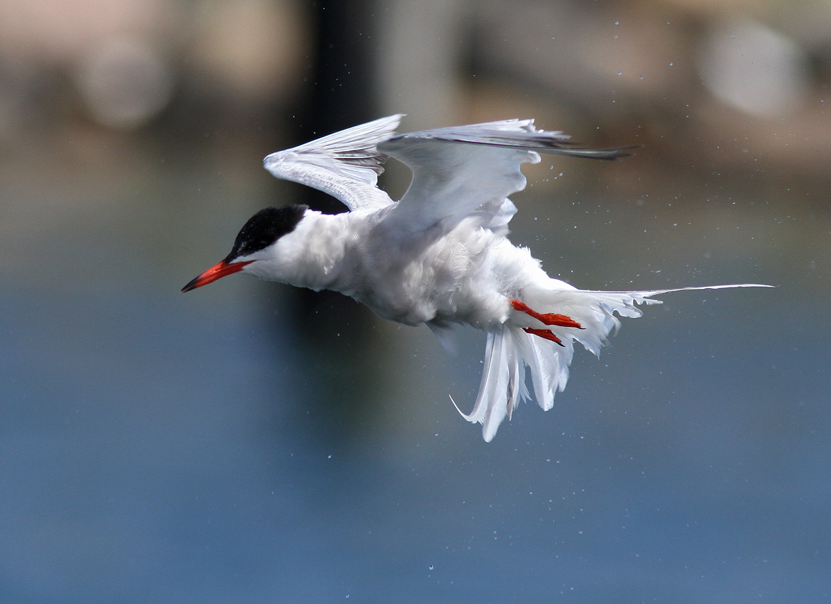 Beskrivelse: Billedet viser Fjordternen der ryster sig, lige efter et dyk efter småfisk.