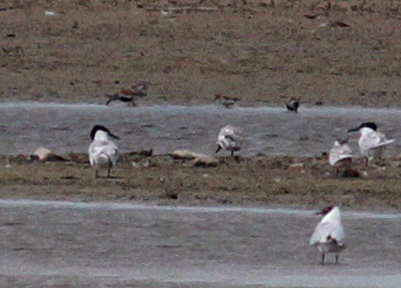 Beskrivelse: Egentligt havde jeg helt opgivet billederne fra Lejsø af den Rødhalsede Ryle, der er beskrevet under fundbeskrivelse. Dette foto er det bedste, og viser vel knapt andet end en dværgryletype mellem Almindelige Ryler, men er i det mindste et doku-foto. Jeg forstørrede det kraftigt og kunne på min skærm faktisk erkende en teglrød strubefarve, men ellers er der jo ikke meget; dog mangler Dværgryles varmt farvede felter på halssiden.