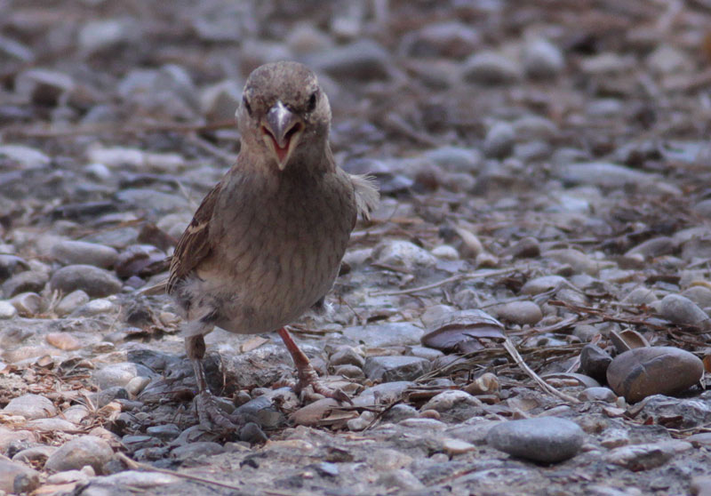 Beskrivelse: Italiensk Spurv regnes af nogle som egen art, af andre som hybridsværm. Hunner angives tit at være umulige at kende fra Gråspurv - døm selv, og bemærk de ret tydelige striber over brystet, der er en karakter fra Spansk Spurv. Stribningen varierer noget, og er hos nogle ganske svag, hos andre næsten kraftigere end hos Spansk Spurv,