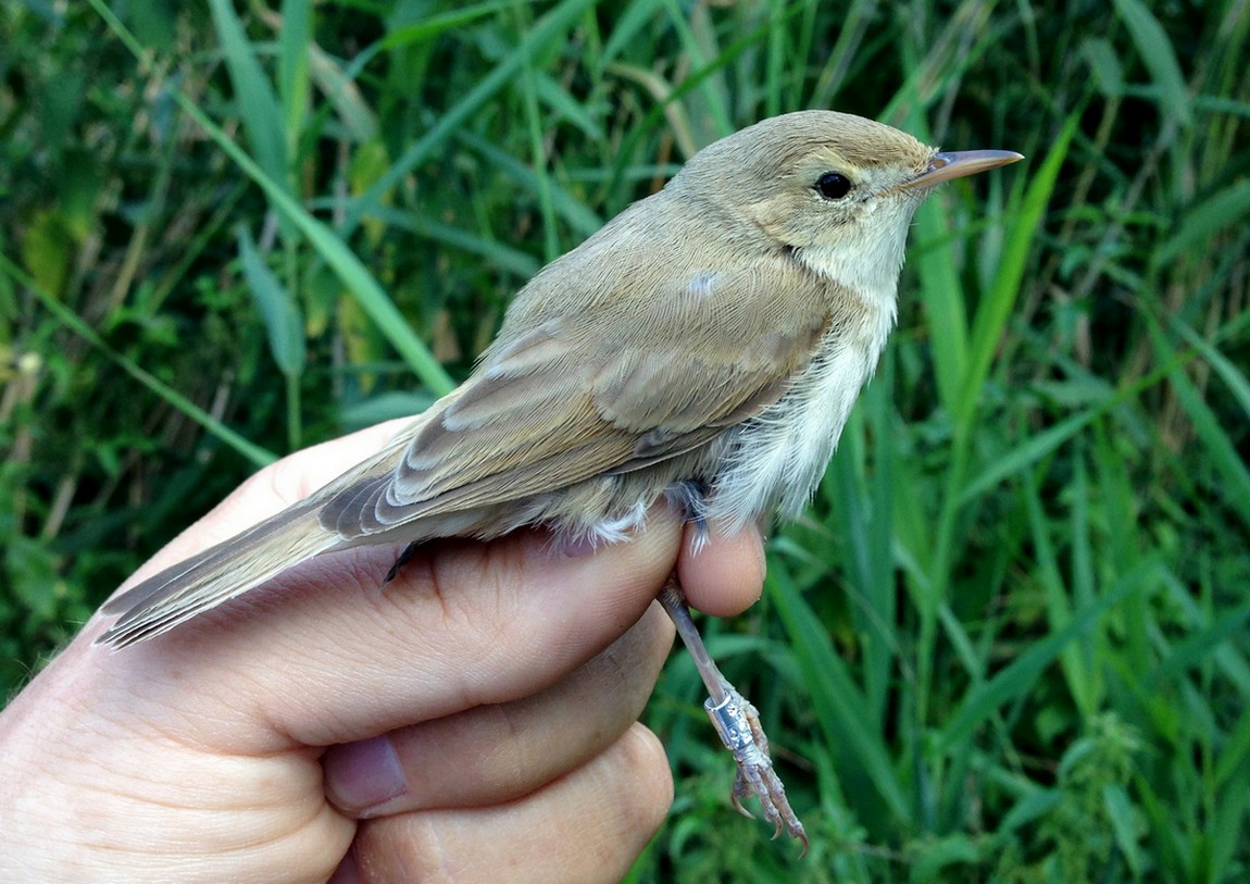 Beskrivelse: Luxembourg's first Booted Warbler (Hippolais caligata) was caught and ringed 21.08.2013 at Uebersyren bird ringing station by J. Schmitz and his team.