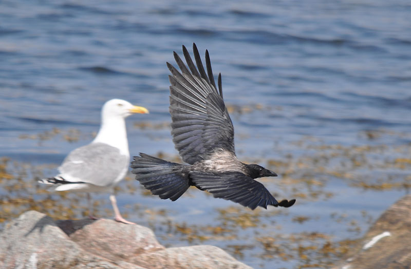 Beskrivelse: Three immature hybrids together with adult Carrion Crow were present in the northern part of the island.