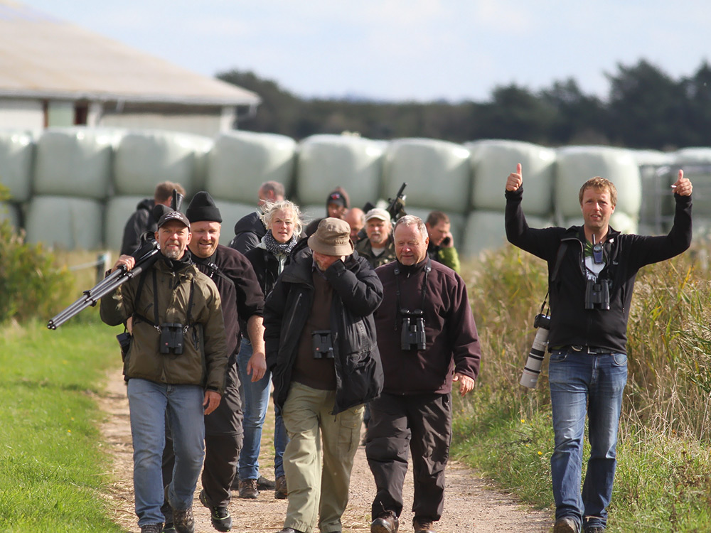 Beskrivelse: Overvejende glade birdere fejrer Tajgapiber på Mandø.