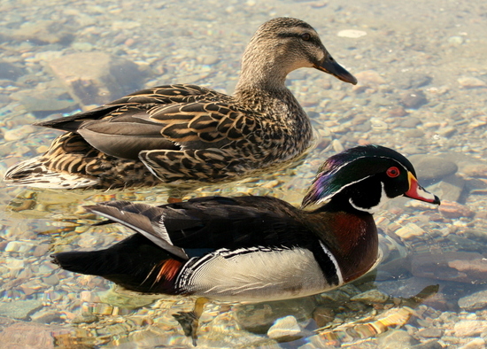 Beskrivelse: This 'un-even pair' was observed to stay close for days - male mallards was rejected in an agressive way.