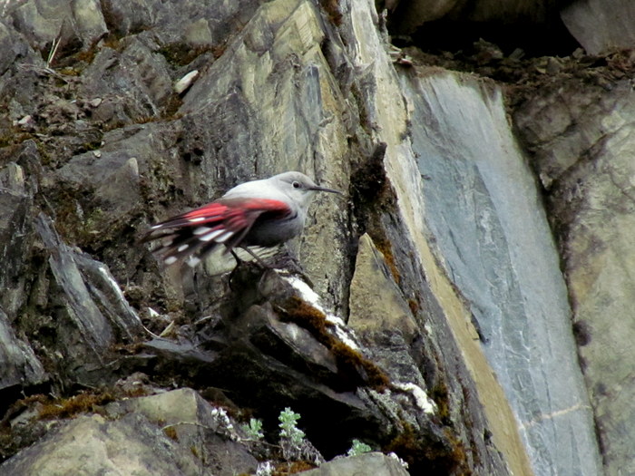 Beskrivelse: Havde netop mistet en fouragerende han ud af syne, idet den fortsatte opefter, da en bevægelse længere henne af klippevæggen afslørede, at murløber-showet kunne fortsætte med hunnen, med den hvide strube.