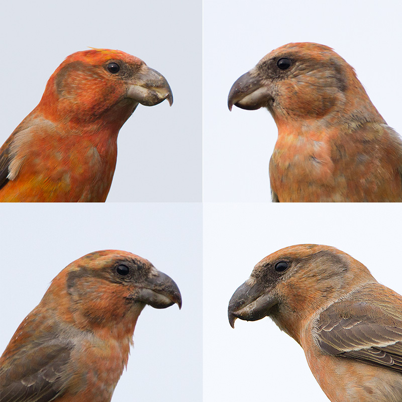Beskrivelse: Lille/Stor Korsnæb kan være meget forskellige både i farver og statur, men en sjov lille ting er at næborientering også kan være både venstre- og højrevendt.