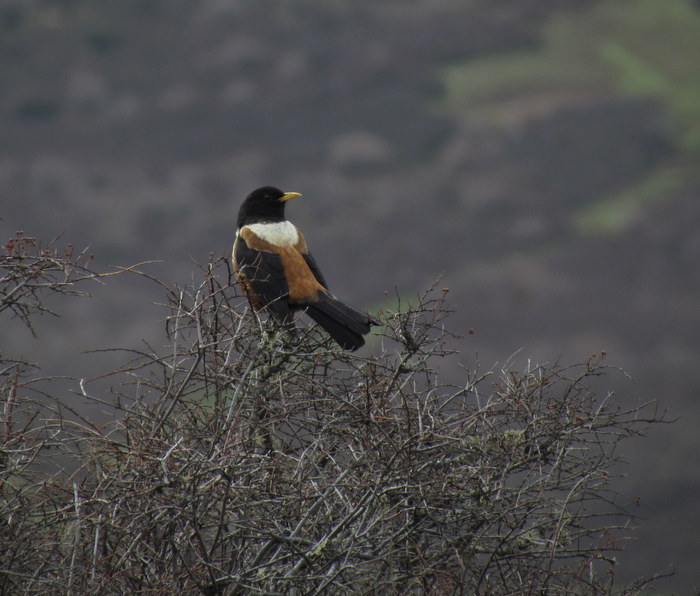 Beskrivelse: Afløser Chestnut Thrush ved trægrænsen og opefter.