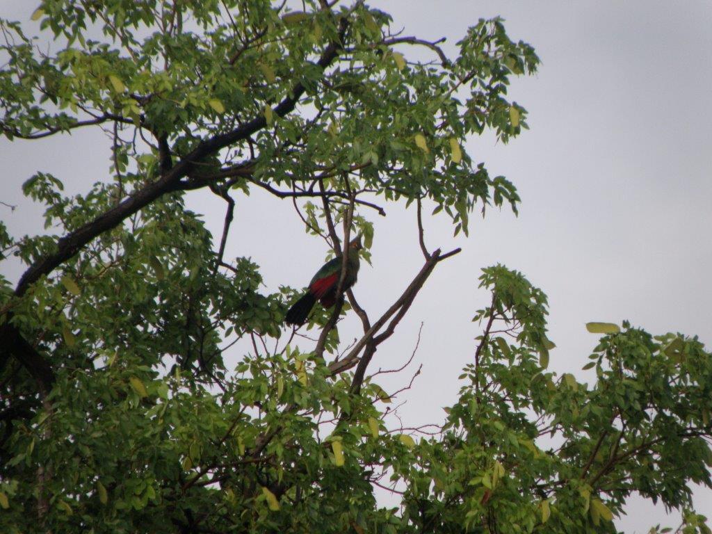 Dejligt at se et billede fra de spektakulære omgivelser ved Victoria vandfaldene. Turakoens lange top viser, at der er tale om Scarlows Turaco (T. scharlowi). Denne centralafrikanske art kigger lige netop ind i det sydlige Afrika omkring Vic Falls. Den meget lignende Livingstone's Turaco træffes i Zimbabwe i den østlige del af landet langs grænsen til Mocambigue.