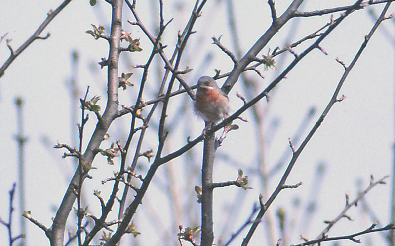 Beskrivelse: Dokumentationsfoto til gammel SU-sag (scannet fra dias) af den hidtil eneste godkendte forekomst af arten på Møn: Mandemarke Bakker, Høvblege 1.-7. maj 1993. Fuglen er godkendt som den østlige race, <i>albistriata</i>. Den sås iøvrigt i samme busk sammen med Danmarks eneste Sortstrubede Sanger den 7. maj. Bemærk for <i>albistriata</i>: Hvid bug og flanke samt forholdsvis bred, hvid skægstribe. Mvh Per Schiermacker-Hansen