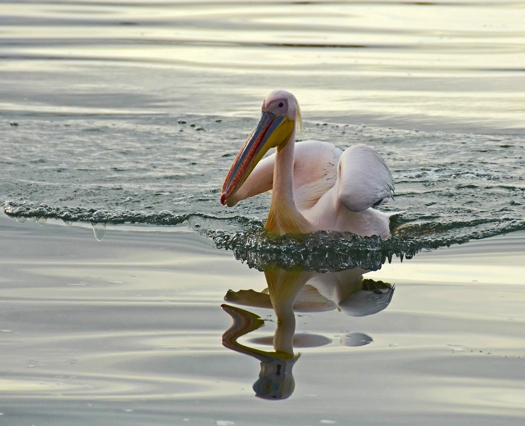 Beskrivelse: fra en sejltur fra Walvis Bay i Atlanterhavet, med mange pelikaner flamingoer og pelssæler m.m.