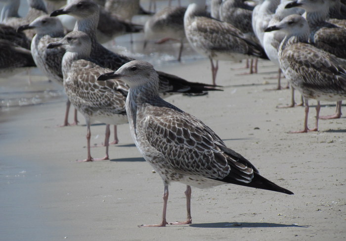 Beskrivelse: Ungfuglene fælder først juvenildragten efter efterårstrækket, så i starten af november ser størstedelen stadig ud som en gennemsnitlig, mørk ung Sildemåge, men den kraftigere bygning og størrelsen kan give et godt fingerpeg om, at det er Sibiriske heuglini'er.