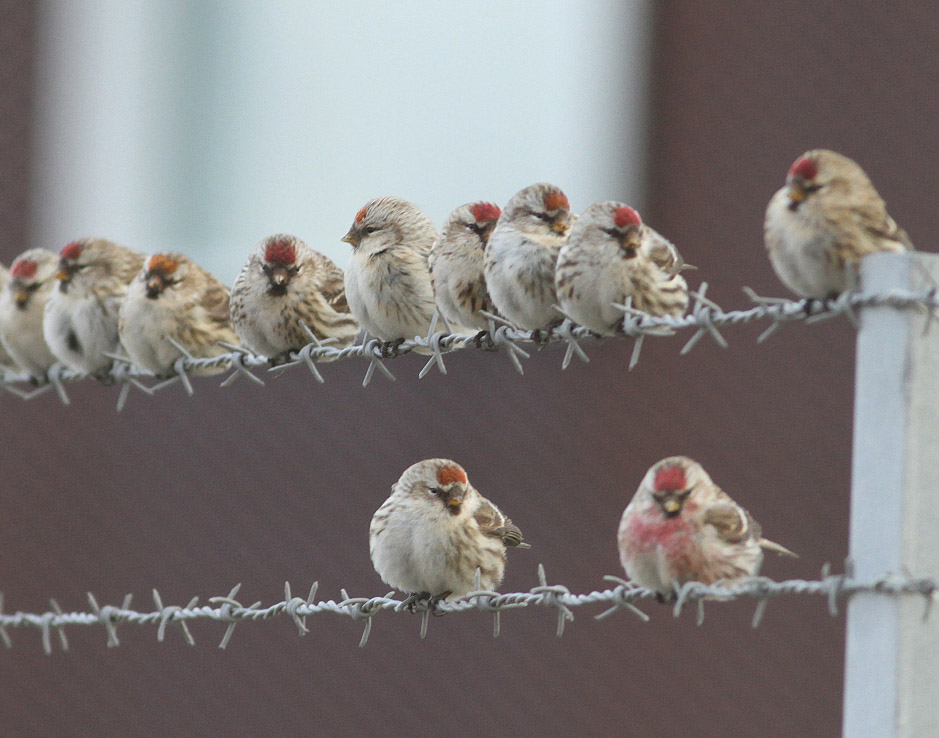 Beskrivelse: 60 gråsisken, 2 hvidsisken og 4 bjergirisk holdt til i samlet flok ved sydøst enden af Nordsøvej i dag. Set godt i tidsrummet kl. 9.30 - 11.15.