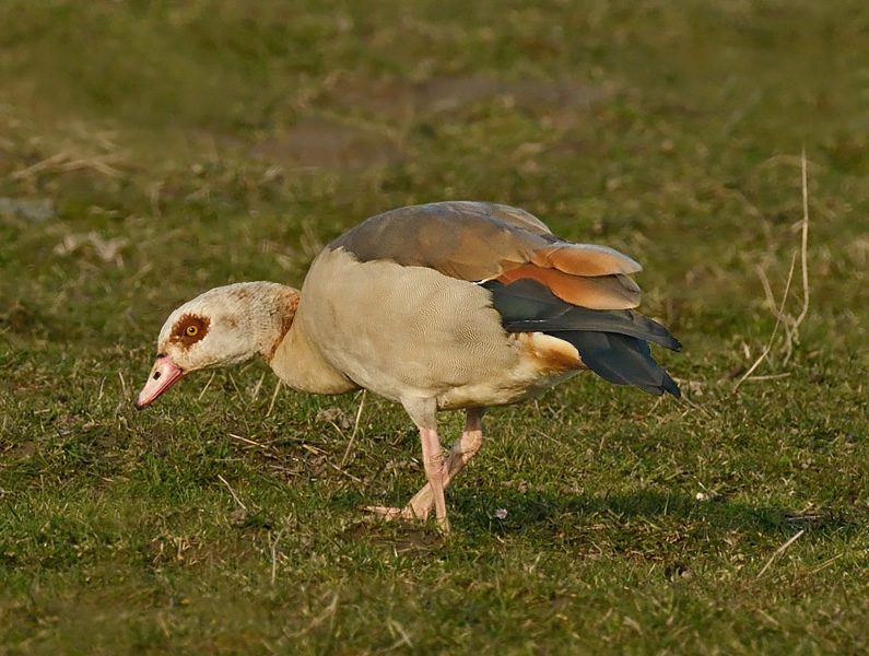 Beskrivelse: En underlig gås – går på marken som en brunlig,stivbenet Dromedar, imellem de langt mere graciøst fouragerende Bramgæs