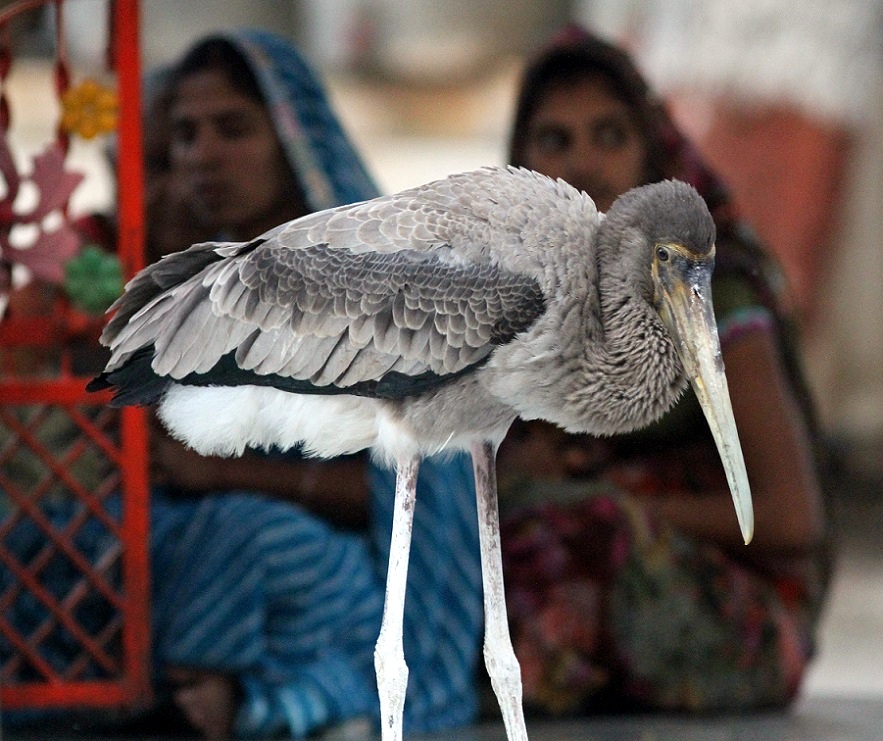 Beskrivelse: Bhavnagar a city of a million and a quarter residents, is home to a remarkable resident population of near threatened, Painted Storks right in the center of town. Pilgarden park has a small temple where the birds happily wander around under the trees where they nest.