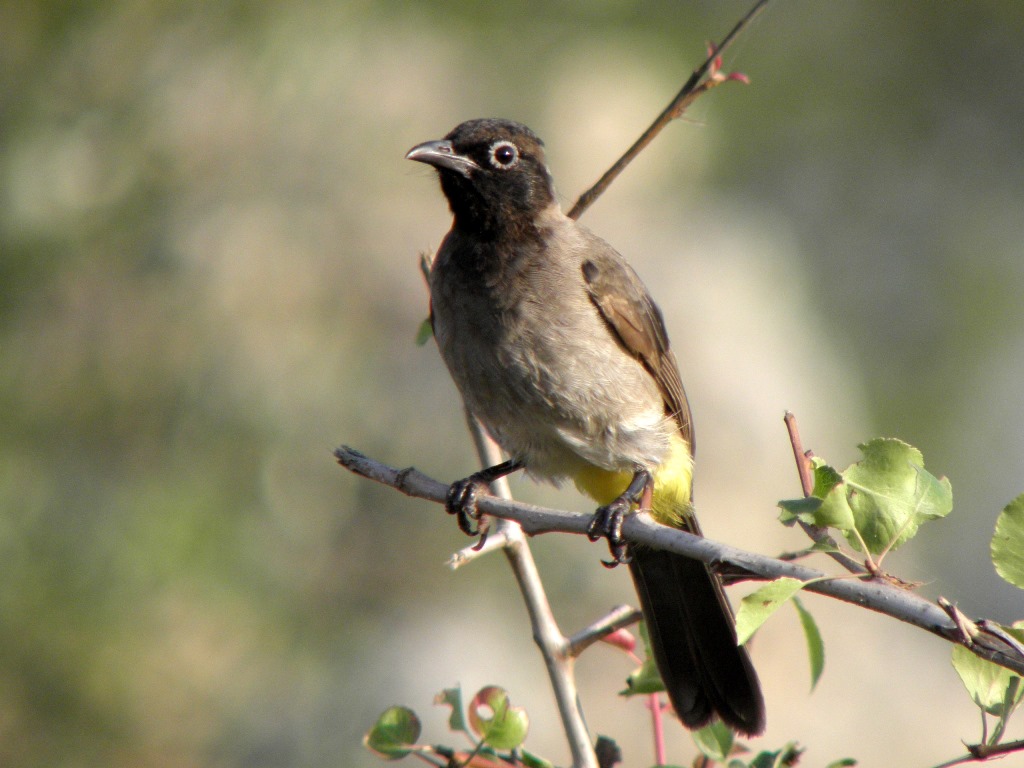 Billedet viser en Levantbulbul (Pycnonotus xanthopygos).