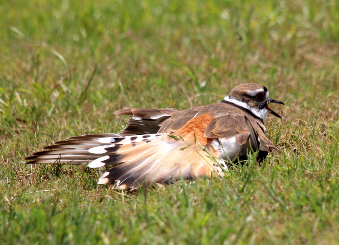 Beskrivelse: The decoy-position of the bird gives a nice introduction to both colours other-wise hidden and to irrational behavior (in this context irrational). The nest is right out-side the club-house near-by the chipping green - every-one knows it is there, golfers, green-keepers - even the cat - it is so to speek protected by the choice of a very busy place - even though it still performed the "decoy-dance" from time to time - here more than 15 meters from the nest. Besides that an exellent spot for birding (and golfing).