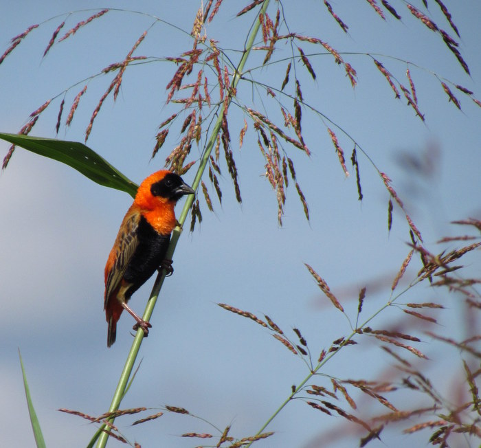 Beskrivelse: Et fast indslag ved alle vådområder i det sydlige Afrika, hvor hanner i forskellige nuancer af orangerødt er meget iøjnefaldende i toppen af rørskoven.