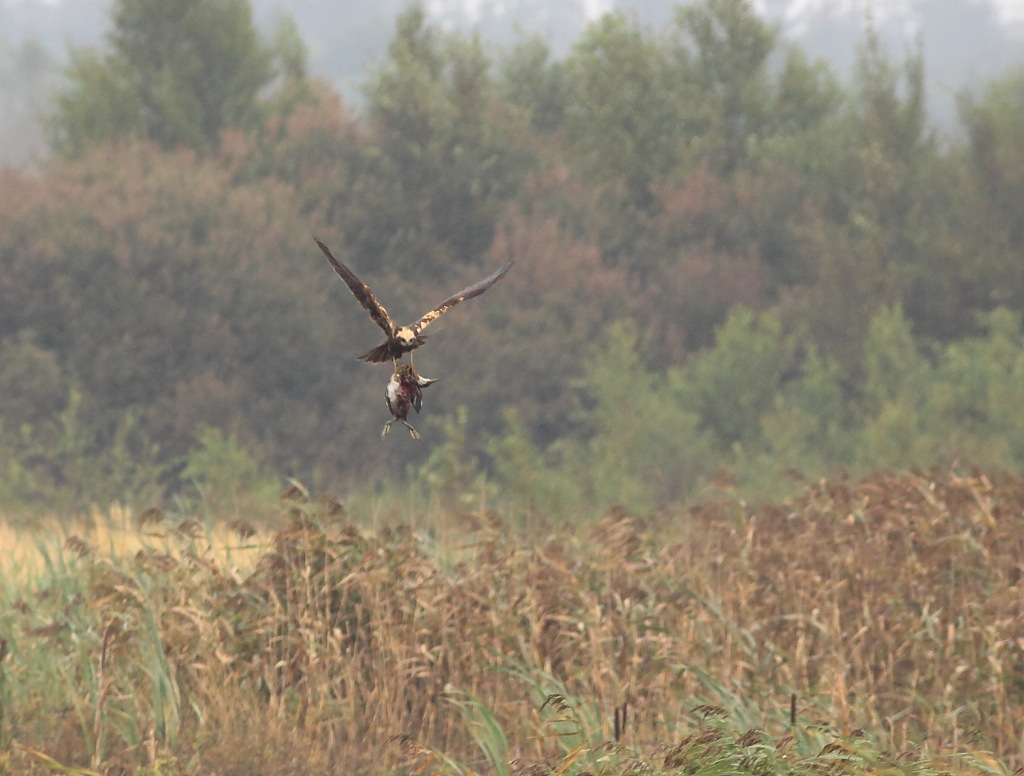 Titel: Rørhøg med kæmpebytte - en Gråstrubet lappedykker!