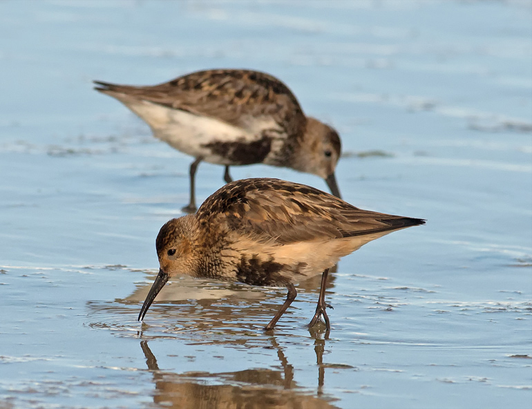 Beskrivelse: Fandt i to forskellige flokke to sådanne iøjnefaldende orangetonede individer, men ingen anden forklaring findes, end at de må have fået noget farvestof på sig.