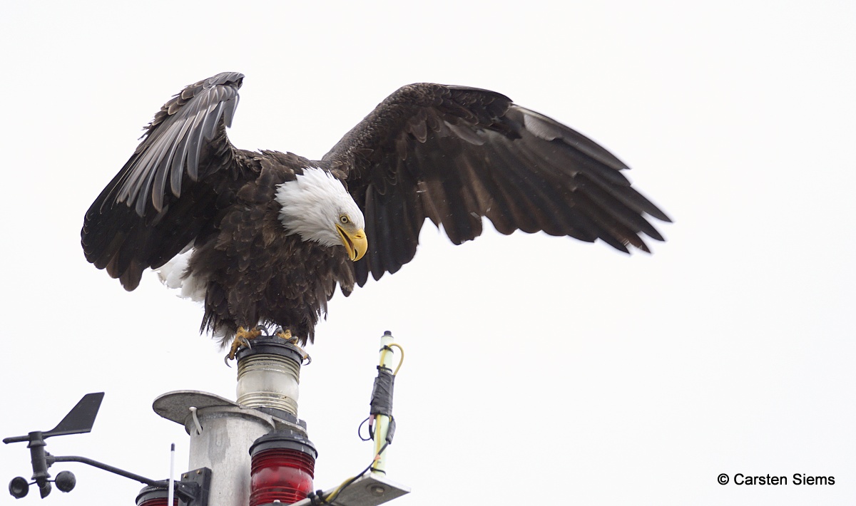Beskrivelse: Det var til at komme rimelig tæt på de flotte Bald Eagles, der holdt til ved kystbyen Homer med tilhørende Homer Spit, men deres siddepladser var ikke så "naturlige" i dette havnemiljø