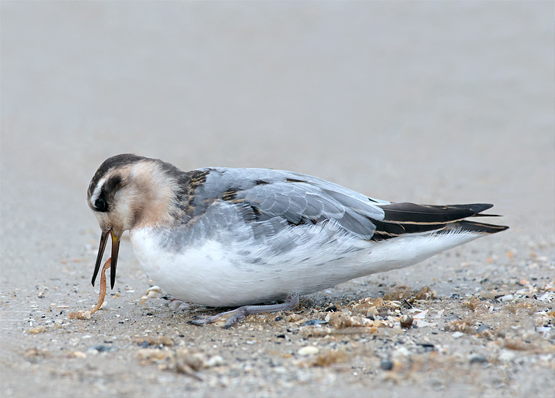 Beskrivelse: Thorshanen proppede sig uden ophør med de små, røde Lanice orm, enten fundet løbende langs strandkanten, eller plukkede fra små vandhullers væg.