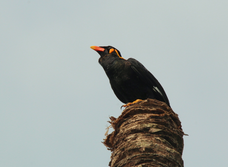 Beskrivelse: The Hill Myna is very often sitting high on poles... a not so favorable photo-position :-)