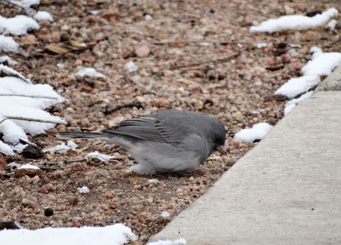 Beskrivelse: Han af typen Slate-coloured (grålig) ssp. hyemalis/cismontanus.