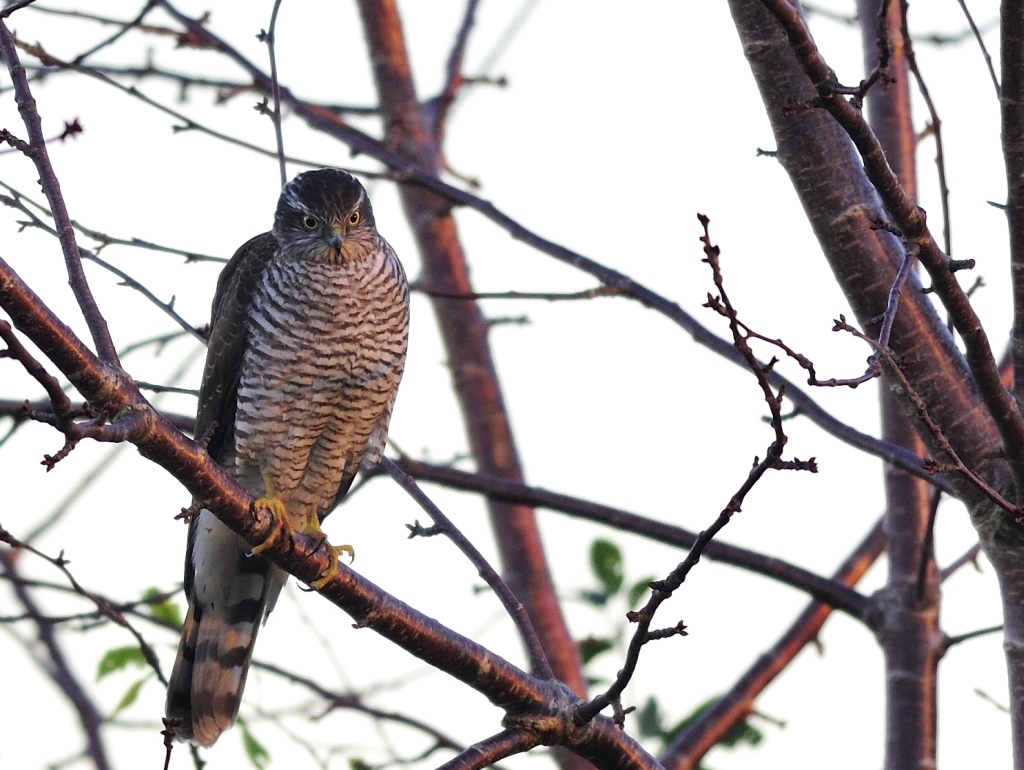 Beskrivelse: Spurvehøg i den sidste aftensol.