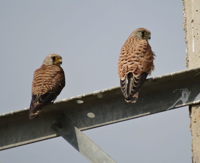På billedet ses til venstre en gammel hun (slidt fjerdragt, gul orbitalring og vokshud ved næbbet) sammen med en ungfugl, som kan kendes på smuk, frisk dragt, med grålig orbitalring og vokshud og hale som endnu ikke er fuldt udvokset (når kun vingespidserne).
