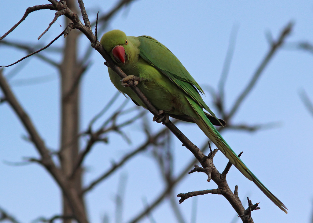 Beskrivelse: Denne fugl var i flok sammen med en Senegalpapegøje og 14 Nandayparakit. Flokken blev flere gange set i den lille park overfor Hotel Andorra