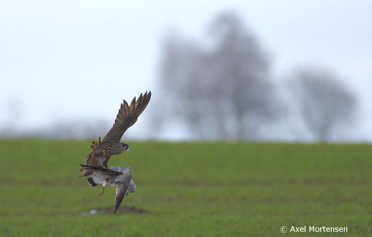 Titel: Jagede over en mark med måger