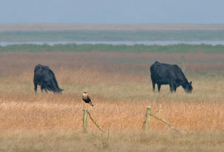Beskrivelse: The Caracara is most likely a sub-adult bird soon in it's 2. year (brownish, but with yellow legs, - not pale). Left wing was somehow injured, not folded normally along the body - but it seemed alright and was flying and searching for food in a normal rutine.