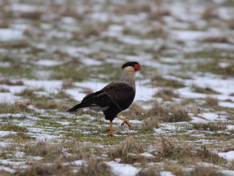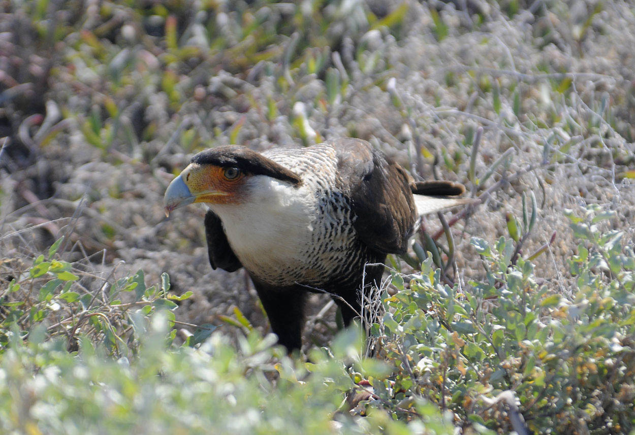 Fuglen har gult ansigtsskin. Jeg har set caracaraer i Pantanal i september, hvor halvdelen havde gult skin og resten af de voksne fugle havde rødt skin. Jeg har set Crested Caracara i USA og Mexico i januar, marts, april og september, og jeg har ikke set nogen med gult skin, så måske kan mine observationer være til hjælp for nogen når de ser caracaraer i blandingszonen, et sted i mellemamerika.
