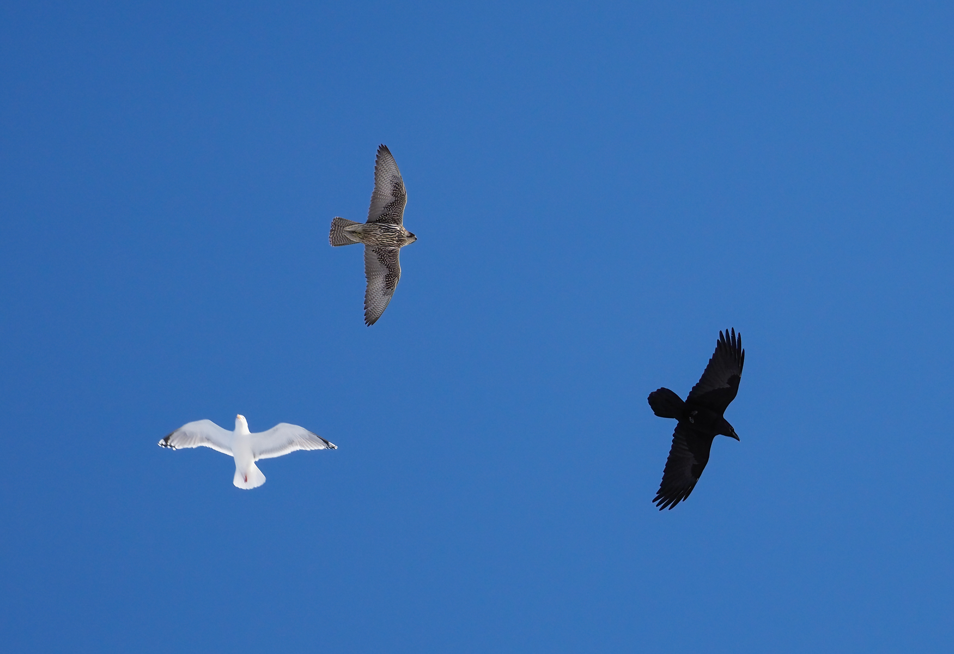 hej Henrik. Du er en meget bedre fuglekikker end mig, men den falk du har fotograferet er da en vandrefalk - 1K - jagtfalk har da helt anden kropsform (jizz), desuden har jagtfalk da hverken mørk kalot eller tydelig skægstribe vandrefalkemaske), vel ?